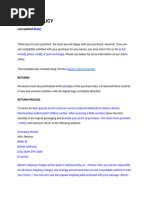Name: __________________________________ Date:_________ Order Number:_________________________________ Email:___________________________________________ Ship All Returns To: Attn: Azure Returns & Exchanges 1748 Jackson St Chula Vista Ca., 91913 Check One: Return/ Refund