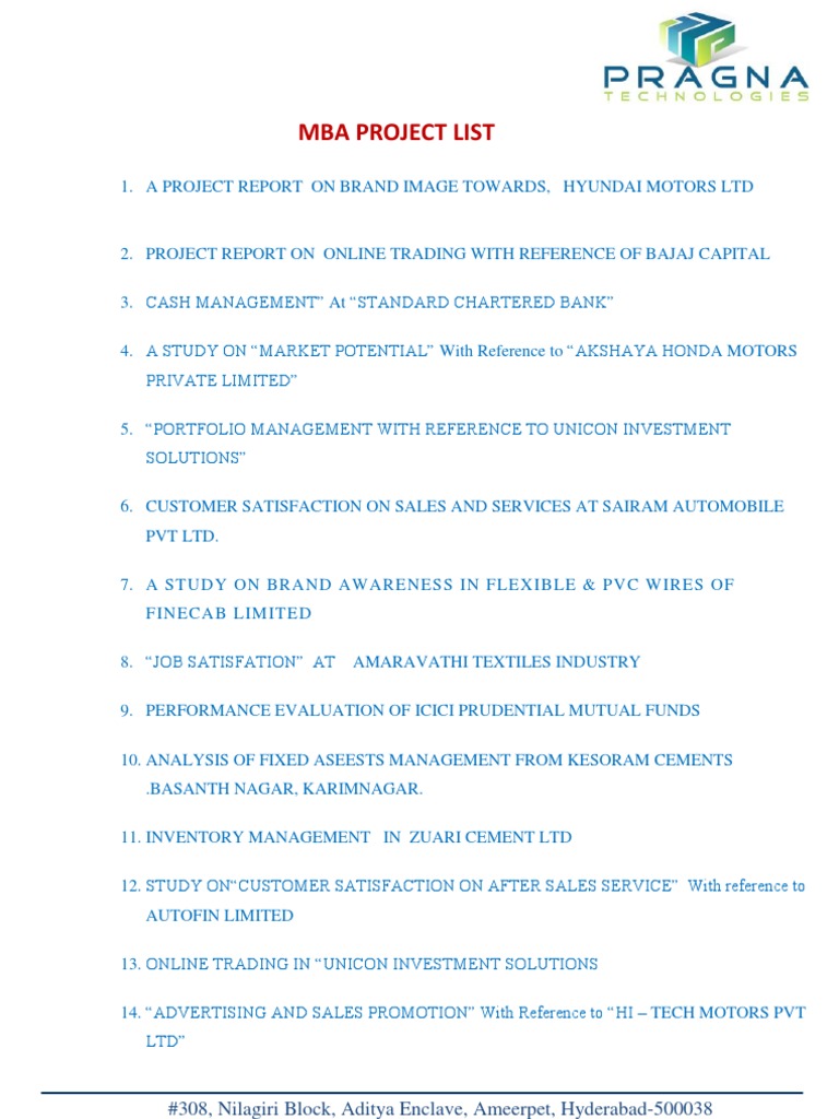 MBA PROJECT LIST