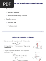 The reason for summing over all the initial states is that when the atom is excited, all the p-levels are equally occupied, since their energy difference is so tiny compared to the 2p 1s energy difference. We also sum over all the nal states if we perform an experiment that does not discriminate between them, as is the case for a spectroscopic measurement. In our calculation of the 2p l 1s transition rate, we averaged over the initial m-states. There we were concerned with the problem of asking: If we have N atoms in the 2p states, how many will decay per second? The averaging came about because of the fact that under most circumstances, when N atoms are excited, about N/3 go into each one of the m 1, 0, 1 states. Here, the fact that there are more levels in the P3/2 state than there are in the P1/2 state is relevant. There will be altogether six levels, (four with j 3/2 and two with j 1/2), and there will be on the average N/6 atoms in each of the states. The fact that there are more atoms in the j 3/2 subset of levels just means that more atoms decay, and that therefore the intensity will be larger.
