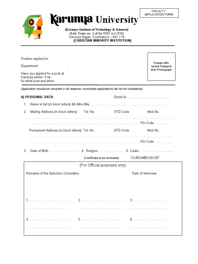 K) Would you be willing to uphold the aims and objectives of the Karunya University, if you are appointed to