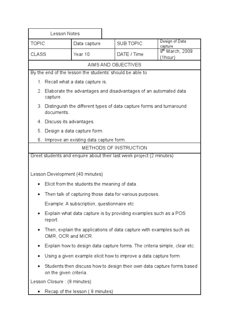 • Explain how to design data capture forms. The criteria simple, clear etc.