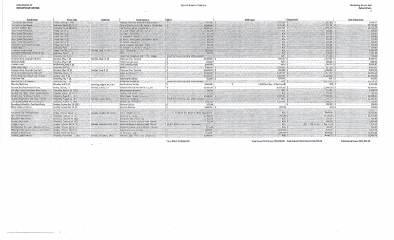 special events cost vs billed spreadsheet