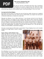 como se tivesse chegado a hora de provar a mim mesmo e aos outros do que eu era capaz. Nos meus anos de adolescente eu j estava envolvido com a msica, tendo at comeado a tocar e cantar onde quer que fosse convidado. No demorou para encontrar amigos que me oferecessem uma vlvula de escape para meus problemas. Foi assim que ingressei no horrvel mundo da bebida e das drogas, fumando maconha, cheirando cola e chegando at a consumir cocana. Me entristece lembrar as muitas vezes em que envergonhei meus pais, cambaleando bbado ou drogado e desrespeitando aqueles que me amavam. Alguma Esperana? Cada dia eu afundava mais no vcio e na depravao, e me tornava cada vez mais rebelde contra tudo e contra todos. Minha vida, que tinha comeado nas dificuldades da falta de luz, mergulhou nas trevas cada vez mais densas do desespero. A soluo para meus problemas parecia impossvel. Como poderia eu, viciado e cego, dar a volta por cima? Como poderia existir qualquer esperana para um perdido como eu? Algum Morreu Por Mim! Um dia algum resolveu gastar seu tempo comigo. Sentou-se ao meu lado e comeou a falar de uma soluo que nem me passava pela cabea. Esta pessoa me falou de Cristo. Explicou que toda a runa de minha vida era causada pelo fato de eu ser um pecador perdido. Falou-me que Deus me amava e queria me salvar, no apenas de uma vida de vcios e pecados, mas de uma eternidade de tormento separado de Deus. Jesus havia morrido por mim. Ele havia sido pregado numa cruz para me salvar. Ele conhecia a minha dor e os problemas que eu passava. Ele at sabia o que era ficar sem enxergar. Para provar o Seu amor, Ele teve Seus olhos vendados e foi esmurrado sem