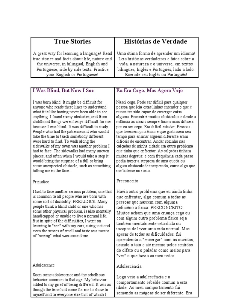 A great way for learning a language! Read true stories and facts about life, nature and the universe, in bilingual, English and Portuguese, side by side texts. Practice your English or Portuguese!