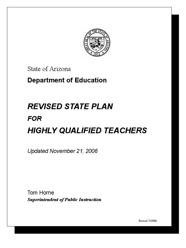ADE submitted its Revised Highly Qualified Teachers Plan to the United States Department
