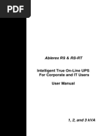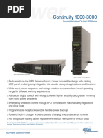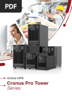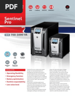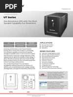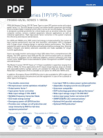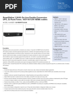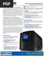 Model Number VA Rating Max Output Power Output Receptacles Input Connection Voltage Range Frequency Range AC Leakage Current Input Protection Voltage Range Frequency Efficiency (AC-AC) Voltage Voltage Regulation Frequency Wave Form Typical Transfer Time Overload Capacity Protection Estimated Runtimes - Full /Half Load Hot Swappable Battery Internal Battery Module DC Leakage Current Battery Type Surge Energy rating Surge Current Capacity Surge Response Time Agency Approvals EMI/RFI Filtering Temperature : Operating (Storage) Humidity: Operating & Storage Elevation: Operating (Storage) Weight: Lbs/Kgs Dimensions (H x W x D): Inch/mm Physical 35.1 / 15.9 3.5 x 17.3 x 15.7 / 89 x 440 x 398 43.0 / 19.5 Certifications cTUVus (conforms to UL1778, CSA 22.2 standards), CE FCC Part 15 Class B, EN5022, EN61000-6-1, EN61000-6-3, EN61000-4-5 Environmental 0 to +40C / +32 to +104F (-15 to +45C / +5 to 113F) 0 to 95% non condensing 0 to +3,000 m / 0 to +10,000 ft (0 to +15,000 m / 0 to +50,000 ft) BM0043 Output (battery operation) 120VAC Nominal 5% until low battery warning 50/60Hz, 0.5Hz (unless synchronized to utility) Simulated sine wave 6-10 ms (max 10ms) 110% for 10 seconds, 120% shutdown immediately Over-current, short-circuit protected, and latching shutdown 5 min. / 16 min. Battery System Yes BM0044 <30uA (10uA) with no AC applied and the unit in the off position Sealed, non-spillable, maintenance-free, valve-regulated lead acid Surge Protection 1140 joules 6500 Amps total 0-ns (instantaneous) normal mode; <5ns common mode 5 min. / 17 min. PRO1000RT 1000VA 700Watts (6) NEMA 5-15R Battery & surge (2) NEMA 5-15R Surge only Input (non-battery operation) 90 to 150VAC 50/60Hz 5Hz, auto-sensing <1.0mA at full rated non-linear load Resettable circuit breaker Output (non-battery operation) 104 to 132VAC 50/60Hz 5Hz >90% at full rated non-linear load PRO1500RT 1500VA 1050Watts (6) NEMA 5-15R Battery & surge (2) NEMA 5-15R Surge only