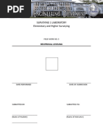 1. Set two hubs either on the 2nd or 3rd floors of the Velasco and La Salle Buildings and call these the BM1 and BM2, respectively. The elevation of BM2 is to be determined while the elevation of BM1 is known or assumed to be 10.000 meters above see level. Also, imagine that the football field between the Velasco and La Salle Buildings is an intervening deep ravine or wide river. 2. Set up and level very carefully the instrument at point A at Velasco Building (3rd floor) near BM1. 3. Take and record a series of three consecutive backsight rod readings on BM1 and six consecutive foresight rod readings on BM2. 4. Move the instrument to point B at La Salle Building (3rd floor) which is on the opposite side of the imaginary ravine and near BM2, set up, and level the instrument carefully. 5. From the new set up, take and record three consecutive foresight rod readings on BM2 and six consecutive backsight rod readings on BM1. 6. Tabulate observed and computed values accordingly. Refer to the accompanying sample format for the tabulation of field data.