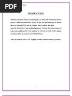 Activities/items that require an Industrial License; Proposals in which the foreign collaborator has a previous/existing venture/tie up in India FDI in India includes, FDI inflows as well as FDI outflow from India. Also FDI foreign direct investment and FII foreign institutional investors are a separate case study while preparing a report on FDI and economic growth in India. FDI and FII in India have registered growth in terms of both FDI flows in India and outflow from India. The FDI statistics and data are evident of the emergence of India as both a potential investment market and investing country. FDI has helped the Indian economy grow, and the government continues to encourage more investments of this sort - but with $5.3 billion in FDI . India gets less than 10% of the FDI of China. Foreign direct investment (FDI) in India has played an important role in the development of the Indian economy. FDI in India has - in a lot of ways - enabled India to achieve a certain degree of financial stability, growth and development. This money has allowed India to focus on the areas that may have needed economic attention, and address the various problems that continue to challenge the country. India has continually sought to attract FDI from the worlds major investors. In 1998 and 1999, the Indian national government announced a number of reforms designed to encourage FDI and present a favorable scenario for investors. FDI investments are permitted through financial collaborations, through private equity or preferential allotments, by way of capital markets through Euro issues, and in joint ventures. FDI is not permitted in the arms, nuclear, railway, coal & lignite or mining industries. A number of projects have been announced in areas such as electricity generation, distribution and transmission, as well as the development of roads and highways, with opportunities for foreign investors. The Indian national government also provided permission to FDIs to provide up to 100% of the financing required for the construction of bridges and tunnels, but with a limit on foreign equity of INR 1,500 crores, approximately $352.5m. Currently, FDI is allowed in financial services, including the growing credit card business. These services include the non-banking financial services sector. Foreign investors can buy up to 40% of the equity in private banks, although there is condition that stipulates that these banks must be multilateral financial organizations. Up to 45% of the shares of companies in the global mobile personal communication by satellite services (GMPCSS) sector can also be purchased. By 2004, India received $5.3 billion in FDI, big growth compared to previous years, but less than 10% of the $60.6 billion that flowed into China. Why does India, with a stable democracy and a smoother approval process, lag so far behind China in FDI amounts? Although the Chinese approval process is complex, it includes both national and regional approval in the same process. Federal democracy is perversely an impediment for