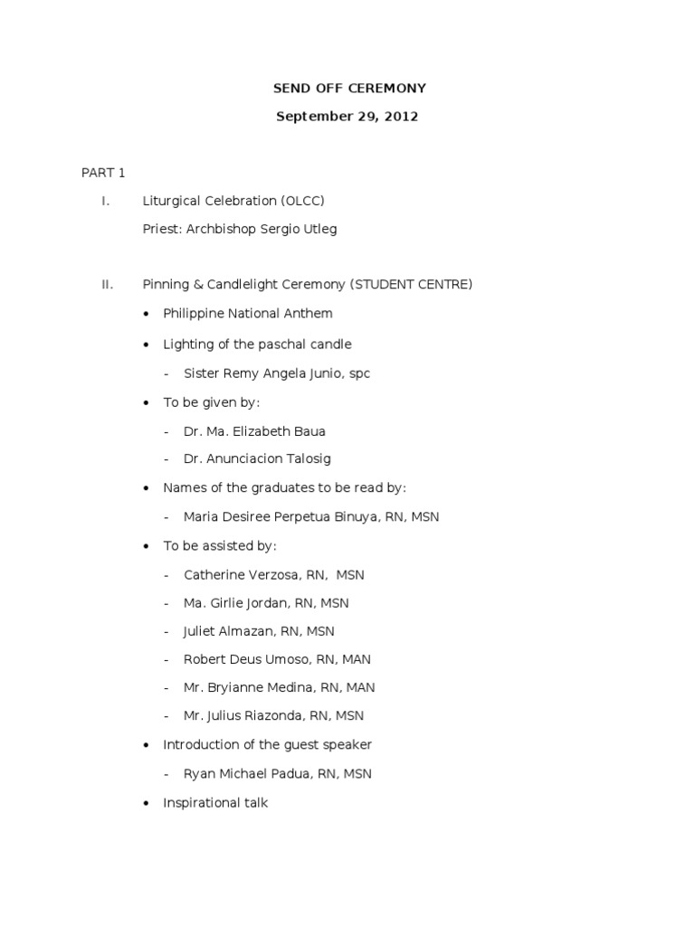 Names of the graduates to be read by: Maria Desiree Perpetua Binuya, RN, MSN