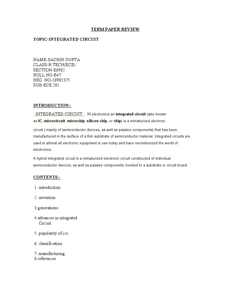 TERM PAPER REVIEW TOPIC-INTEGRATED CIRCUIT