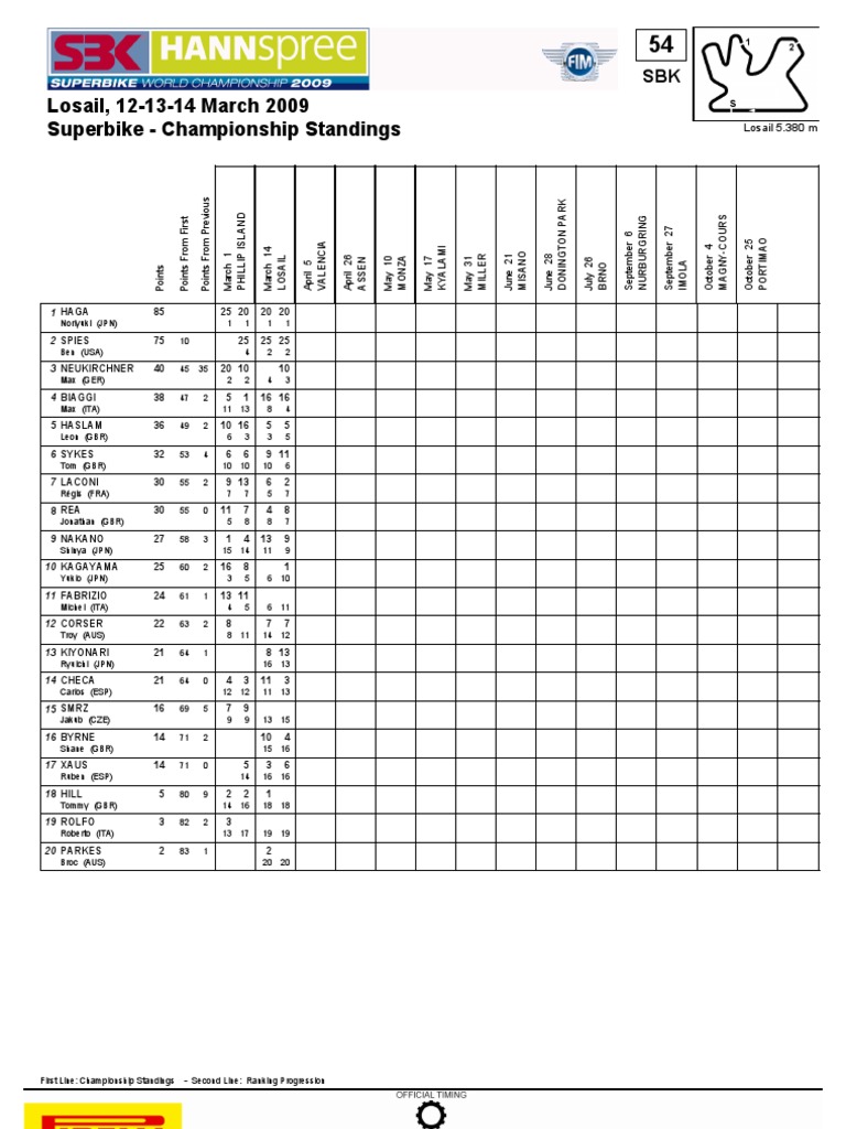 Superbike - Championship Standings Losail 5.380 m