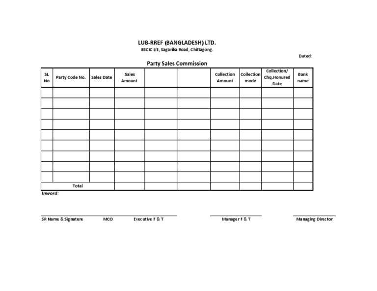 SL No Party Code No. Sales Date Sales Amount Collection Amount Collection/ Collection [Link] mode Date Bank name