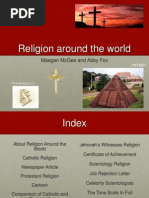 About Religion Around the World Catholic Religion Newspaper Article Protestant Religion Cartoon Comparison of Catholic and Protestant Poem Jehovahs Witnesses Religion Certificate of Achievement Scientology Religion Job Rejection Letter Celebrity Scientologists The Tone Scale In Full Comparison of the 4 Religions Conclusion