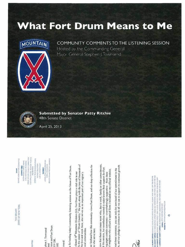 Community Comments to the Listening Session Hosted by Major General Stephen J. Townsend