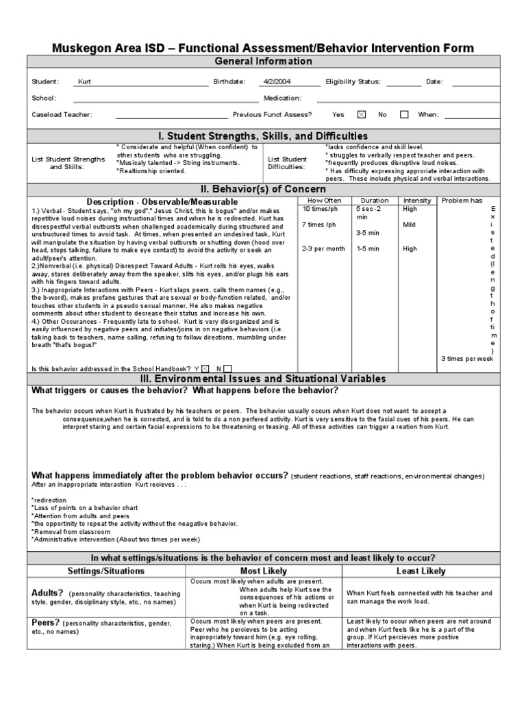 Muskegon Area ISD Functional Assessment/Behavior Intervention Form
