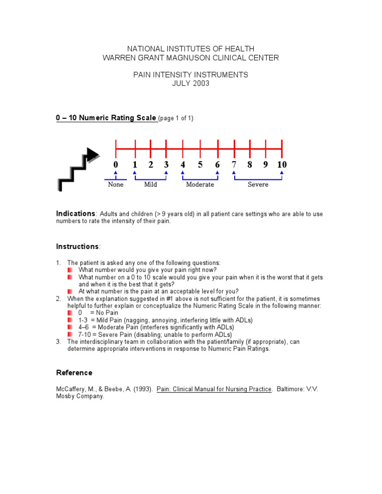 NATIONAL INSTITUTES OF HEALTH WARREN GRANT MAGNUSON CLINICAL CENTER PAIN INTENSITY INSTRUMENTS JULY 2003