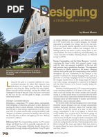 Very important to understanding and designing a system are patterns of use. For instance, we have found that when doing wash you should do it not only when there is strong sunshine available, but after your system has charged itself. (I mention sun only because it is much more predictable than wind.) In other words, we found that depleting your system just because you have the ability to replace the energy is less efficient. Roof design was a factor affecting our energy system. Our array was originally installed above the roof line at the back of our house. We hand built two kiva style fireplaces in the house which had backdraft problems. When we put up additional stacks to achieve better draws, the chimney cast a shadow on the array during winter afternoons. A shadow, we learned the hard way, doesnt just slow the panel down, it shuts off the circuitry in the panel. This tends to seriously limit production! We ended up moving the array. Battery placement is another factor. In addition to ventilation concerns, the batteries need to be easily accessible. Suffice it to say, it can be very uncomfortable testing specific gravity on your hands and knees in a confined space with no lighting. Code in our area created definite restrictions on placement and venting requiring special attention and cost.