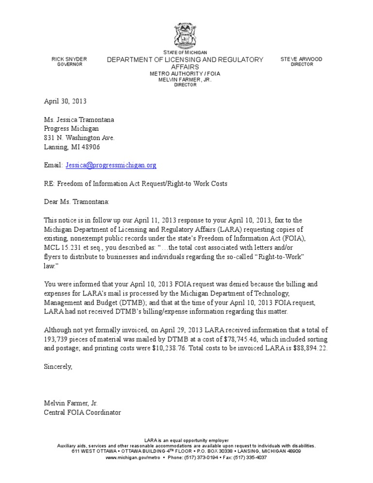 Progress Michigan finally received a response from the Department of Licensing and Regulatory Affairs in response to our FOIA asking how much was spent to promote the RTW law. Unfortunately we were simply asked to accept these numbers at face value, with no documentation backing them up.