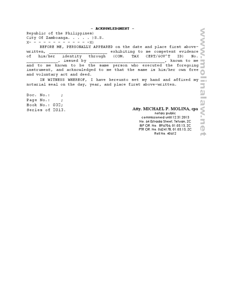 - ACKNOWLEDGMENT Republic of the Philippines) City Of Zamboanga. . . . . )S.S.
