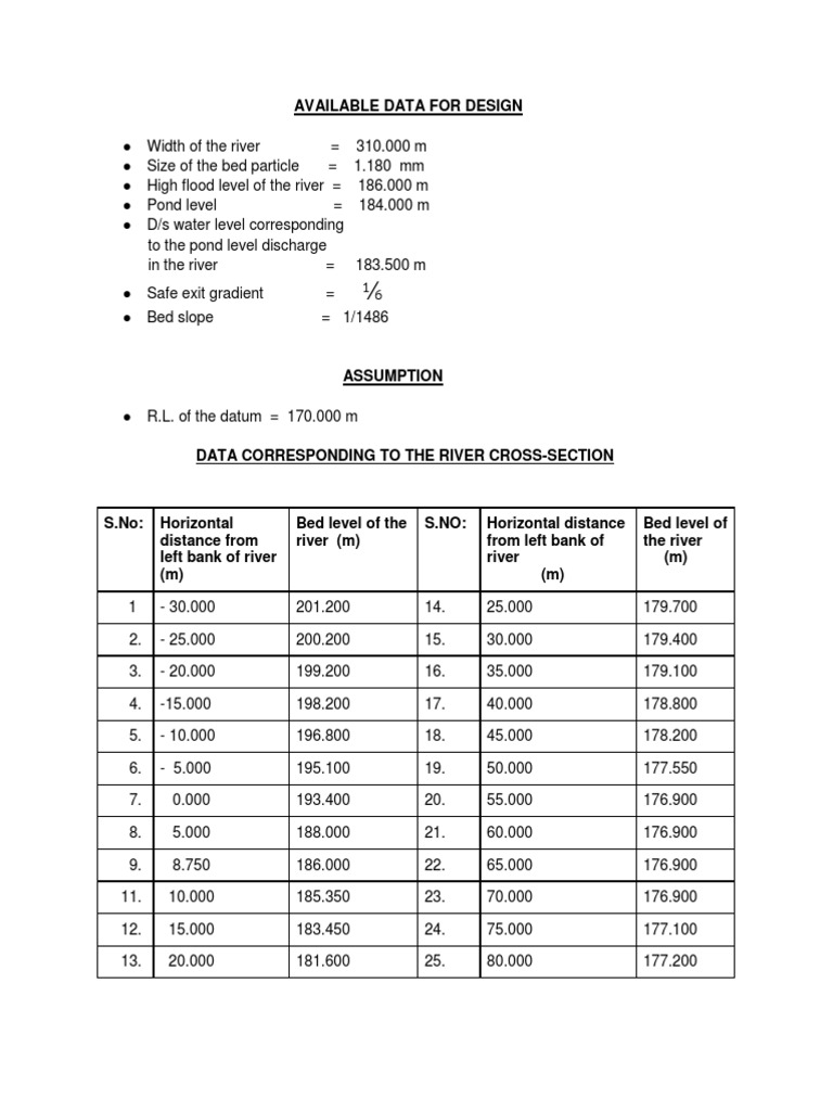 HENCE THE ASSUMED WATER WAY AND THE CREST LEVELS ARE IN ORDER
