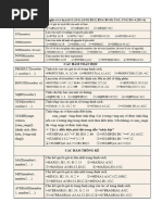MyAverage = z / zzz End Function Function SoTC0(Dayheso As Range, Daydiemthi As Range) As Integer 'Xac dinh Tong so Tin chi cua cac hoc phan co Diem =0. Dim i As Integer SoTC0 = 0 For i = 1 To [Link] If ([Link](1, i) = 0) Then SoTC0 = SoTC0 + [Link](i) End If Next i End Function Function TBCTL4(Dayheso As Range, Daydiemthi As Range) As Double 'Ham tinh diem TBCTL thang 4, doi voi cac hoc phan co Diem>=1.0 Dim i As Integer Dim soTC, tsoTC As Integer TBCTL4 = 0# tsoTC = 0 soTC = 0 For i = 1 To [Link] If ([Link](1, i) >= 1#) Then soTC = [Link](1, i) TBCTL4 = TBCTL4 + [Link](1, i) * soTC tsoTC = tsoTC + soTC End If Next i TBCTL4 = TBCTL4 / tsoTC End Function