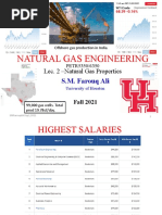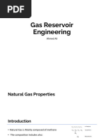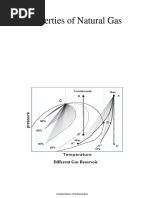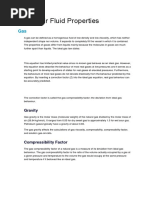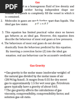 Gas formation volume factor, which is known as Bg, is equal to: Bg = volume at downhole T&P / volume at 60F and 14.7 psia Oil formation volume factor, which is known as Bo, is equal to: Bo = volume at downhole T&P / volume at 60F and 14.7 psia Oil formation volume factor being dependent essentially on the amount of dissolved gas increases with pressure up to the bubble point, where all of the available gas is dissolved and then decreases at a rate determined by the liquid compressibility. 4.1.3 Oil Viscosity Viscosity is the property of a fluid which causes it to offer resistance to the movement of one adjacent particle. The friction forces arising between two immiscible layers of fluid in its motion are proportiional tot he change of velocities per unit length. The viscosity of crude oil decreases with an increase in temperature and with an increase of dissolved gas. Heavier oils are generally more viscous than lighter oils of the same hydrocarbon base. In SI units the unit of viscosity is Pascal-sec., and in field units, centipoise (cp) is used as an oil viscosity. 4.2 Natural Gas Natural gas is produced from three classes of wells. These are: -From wells where the dominant product is oil (oil wells) -From wells where the gas itself is the principal product (gas wells) -As gas from condensate wells. Condensate wells produce from reservoirs in which the hydrocarbons (gas and liquid) originally existed as a single fluid, the reservoir temperature and pressure being above the critical point of the hydrocarbon mixture. Each natural gas, like each crude oil, is a unique mixture of hydrocarbons. All are, however, composed primarily of the light members of the paraffin series and are predominantly methane.