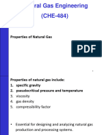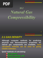4.2.7 Gas Density To calculate the natural gas density one should start with the real gas law. The gas law as applied to the behavior of natural gas is most commonly stated as: PV = znRT where: P = pressure, V = volume, n = number of mols, R = gas constant, T = absolute temperature and z = deviation factor (compressibility factor). The above equation can also be written as: PV = z (W/M)RT where: W = total weight and M = molecular weight of the gas. P(V/W) (zRT/M) V/W = zRT/PM where: V/W is the specific volume of gas (v) and equals to; 1/v = where: is the gas density and the equation takes the following final form. = PM / zRT The value of gas constant, R, is dependent on the system of units used as follows. Table 4-1 Values of Gas Constants