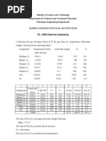 6) A cylindrical tank contains miscellaneous 0.80 gravity gas at 2500 psia and 100 oF. The volume of tank is 10 ft3.How many mols of gas are there in the tank.? What standard volume of gas is this? n = PV / zRT = [(2500) (10)] / [(0.67) (10.7) (560)] = 6.2 moles Vs = 6.2 x 379 = 2350 SCF 7) If the sp.gr. of a crude oil is 0.86, what is the oAPI gravity and density in lb/cu ft?