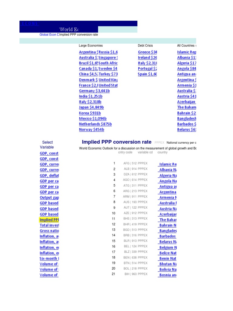 1 Islamic Expressed in Republic of national Afghanistan : currency per current international dollar. These data form the basis for the country weights used to generate the World Economic Outlook country group composites for the domestic economy. The IMF is not a primary source for purchasing power parity (PPP) data. WEO weights have been created from primary sources and are used solely for purposes of generating country group composites. For primary
