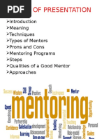 Qualities of successful mentors: Genuine interest Sensitivity to others needs and development Excellent listening skills Commitment Confidentiality Excellent coaching and feedback skills
