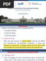 than about 1 % of turns of a winding can be detected. Operate times in the range of 30 ms to 40 ms can be expected, which can be compared to the electro-mechanical Buchholtz- or sudden pressure relays with their operate times of 50 ms to 150 ms. Stability against external faults External faults happen at least ten times more often than internal faults in power transformers. To avoid eventual stability problems following transformer disconnection for external faults, and the high cost of unwanted outages, security against external faults has become increasingly important. Consequently, if an external fault or disturbance has been detected, any trip request is cancelled. There is, however, an exception to this rule, which copes with simultaneous lower-level internal faults, such as inter-turn faults, which may occur immediately after (and often due to) an external fault. The idea behind this feature is as follows. If an external fault is being signalized by the fault discriminator, and one or more start signals have been set, but at the same time, no harmonic block signals exist, then a simultaneous low-level internal fault can be suspected. The faulty transformer can be disconnected immediately, without having to wait for the external fault to be cleared first by some other protection. As a special precaution measure against any unwanted trip, the so called cross-blocking logical scheme (an On / Off setting option otherwise) is imposed temporarily.