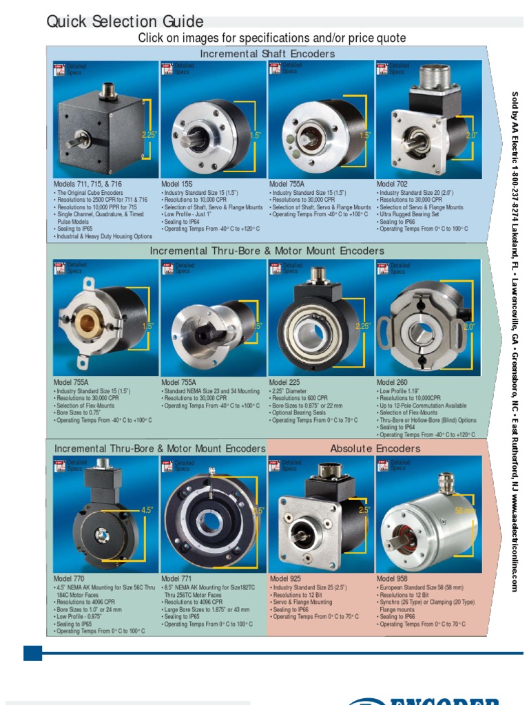 Industry Standard Size 15 (1.5) Resolutions to 30,000 CPR Selection of Flex-Mounts Bore Sizes to 0.75 Operating Temps From -40 C to +100 C