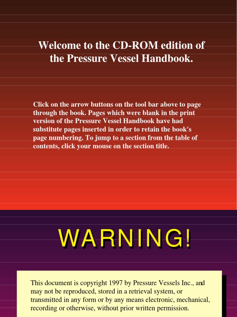 This document is copyright 1997 by Pressure Vessels Inc., andmay not be reproduced, stored in a retrieval system, ortransmitted in any form or by any means electronic, mechanical,recording or otherwise, without prior written permission.It is intended for single user use. Information about site licensesand network use may be obtained by contacting:Pressure Vessels IncorporatedP.O. Box 35365Tulsa, OK 74153 USAwww.pressure-vessel.com