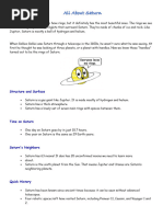 pound object on Earth weighs 116 pounds on Saturn? Isn't it amazing! 3. Did you know that Saturn has no actual surface? 4. The gaps between the rings is caused by gravity. 5. It could oat in water like a balloon in a pool.