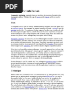 T h e r e a r e f e w e r i nst anc es of i nf l amed tissues. W i t h t h e exc ept i on of t hi s c h a n g e , nasogastric t u b e s a r e v e r y much t h e s a m e t o d a y as t h e y h a v e b e e n f o r t h e l as t t h r e e decades. The m o s t c o m m o n l y u s e d nasogastric t u b e is t h e L e v i n t u b e . O t h e r nasogastric t u b e s i nc l u de t h e S a l e m - s u m p t u b e , t h e Miller-Abbott t u b e , a n d t h e C a n t or t u b e . a. T h e Levin T ube. The a c t u a l t u bi n g is referred to as l u m e n . The L e v i n t u b e is a o n e - l u m e n nasogastric t u b e . The S a l e m - s u m p nasogastric t u b e is a t w o - l u m e n piece of equi pme nt ; t h a t is, it h a s t w o t u b es . The L e v i n t u b e is u s u a l l y m a d e of plastic w i t h s ever al drai nage h o l e s n e a r t h e gastric e n d of t h e t u b e . T h e r e a r e gr aduat ed mar k i ngs on t h e l u m e n so t h a t you c a n s e e how f a r you h a v e ins erted t h e t u b e i nt o t h e pati ent. T h i s nasogastric t u b e is u s e f u l in instilling mat erial i nt o t h e s t o m a c h or s uc ti oni ng material o u t of t h e s t o m a c h . b. T h e Sal e m - Sump T ube. T h i s nasogastric t u b e is a t w o - l u m e n piece of equi pme nt . It h a s a drainage l u m e n a n d a s mal l er s ec o n d a r y t u b e t h a t is o p e n to t h e at mos ph er e. The m a j o r a d v a n t a g e of t hi s t w o - l u m e n t u b e is t h a t it c a n be u s e d f o r c o n t i n u o u s s uc t i on. The c on t i n u o u s airflow r e duc es t h e f r e q u e n c y of s t o m a c h c o n t e n t s bei ng d r a w n up i nt o t h e w h o l e of t h e l u m e n w h i c h is in t h e patient's s t o m a c h . c. T h e Mi ll er - Abbot t Tube. T h i s t u b e is al s o a t w o - l u m e n nasogastric t u b e . T h e r e is a r ub b er bal l oon at t h e tip of o n e t u b e ; t h e o t h e r t u b e h a s h o l e s n e a r its tip. Af t er o n e t u b e h a s pass ed t h r o u g h t h e p y l o r u s ( t h e o peni ng b e t w e e n t h e s t o m a c h a n d t h e d u o d e n u m ) , t h e bal l o o n is inflated w i t h air. The b al l oon is t h e n m o v e d a l o n g t h e intestinal t r act by peristalsis ( m o v e m e n t by al t er nat e c ont r act i on a n d r el axat i on, in t h e c as e, of t h e intestinal w al l s . The r es t of t h e t u b e is propelled a l o n g w i t h t h e bal l o o n. The c o n t e n t s of t h e intestines a r e s uc k e d bac k t h r o u g h t h e h o l e s in t h e t u b e . The MillerAbbot t nasogastric t u b e h a s t w o separat e openi ngs . The e n d of t h e t u b e w h i c h is outsi de t h e patient's b o d y h a s a m e t a l adapter w i t h t w o openi ngs. One openi ng is f o r s uc t i on a n d is m ar k e d "suction." The o t h e r o pe ni ng is u s e d by a doc t or to inflate t h e bal l o on. Be s u r e t hi s l as t openi ng is m ar k e d so t h a t no o n e bec om es c o n f u s e d a n d c o n n e c t s t h e o p e ni n g to a suc t i on devi c e or instills irrigating s ol ut i ons t h r o u g h t h a t ope ni n g. d. T h e Cant or T ube. T h i s nasogastric t u b e h a s o n e l u m e n a n d a b a g on t h e e n d . M e r c u r y is inserted i nt o t h e bag, a n d t h e m e r c u r y h e l p s m o v e t h e t u b e a l o n g t h e intestinal t r act. Bef or e t h e t u b e is inserted i nt o t h e pat ient, m e r c u r y is injected dir ectly i nt o t h e b a g w i t h n e e d l e a n d s yr i nge. The n e e d l e m ak e s an ope ni n g l ar ge e n o u g h f o r t h e m e r c u r y to go t h r o u g h b u t n o t l ar ge e n o u g h f o r t h e m e r c u r y to l eak o u t . When t h e t u b e is inserted i nt o t h e pat ient, t h e b a g hol di ng t h e m e r c u r y bec o mes l o n g . The C a n t or t u b e is v e r y effective when u s e d f o r intestinal decompr ession (relief of s tr etc hi ng of t h e intestine t h r o u g h s uct i oni ng o u t intestinal c o nt e nt s )