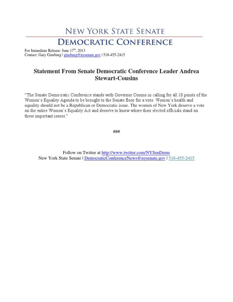 Statement From Senate Democratic Conference Leader AndreaStewart-Cousins