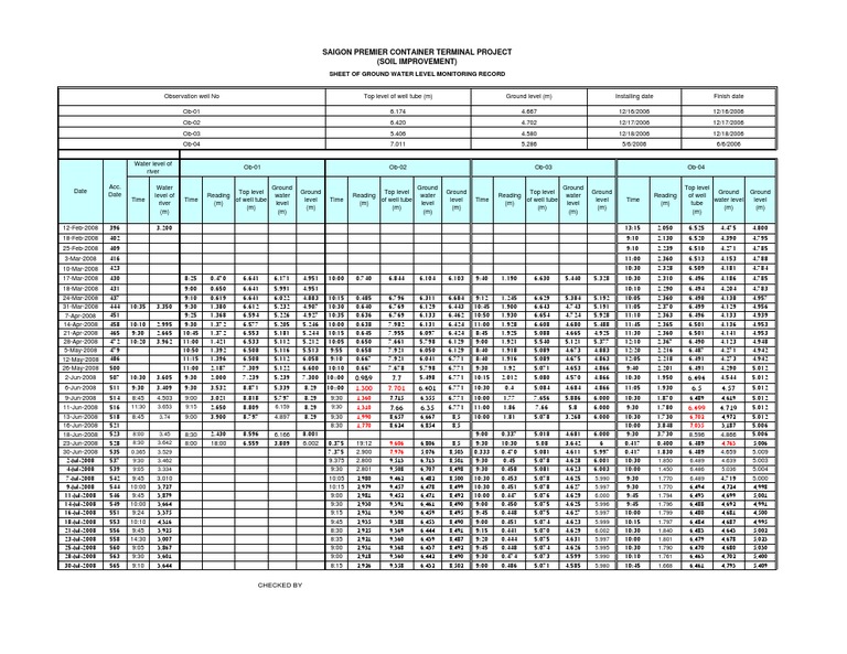 SHEET OF GROUND WATER LEVEL MONITORING RECORD