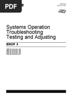 The ECM is housed in an environmentally sealed casting. All wiring connections to the ECM are made at the two sealed seventy-pin connectors. ENGINE SPEED GOVERNING Desired engine speed is calculated by the ECM and held within +/0.2 Hz for isochronous and droop mode. The ECM accounts for droop that is requested. The proper amount of fuel is sent to the injectors due to these calculations. The ECM also employs cooldown/shutdown strategies, acceleration delays on startup, acceleration ramp times, speed reference and a low/high idle switch is also available via communications to the EMCP 3. FUEL LIMITING Warm and cold fuel-air ratio control limits are controlled by the ECM. Electronic monitoring system derates, torque limit, and cranking limit, programmable torque scaling, and cold cylinder cutout mode are standard features. FUEL INJECTION TIMING Master timing for injection is controlled by the ECM control. Temperature dependencies are accounted for in the fuel injection calculations. ELECTRONIC MONITORING Electronic monitoring of vital engine parameters can be programmed. Warning, derate, and shutdown event conditions may be customized by the user. INFORMATION MANAGEMENT The ECM stores information to assist with electronic troubleshooting. Active and logged diagnostic codes, active events, logged events, fuel consumption, engine hours, and instantaneous totals aid service technicians when diagnosing electronic faults and scheduling preventive maintenance. CALIBRATIONS Engine performance is optimized through injection timing. Auto/manual sensor calibrations are standard features. ON-BOARD SYSTEM TESTS System tests are available to assist in electronic troubleshooting. These tests include: injector activation, injector cutout, and override of control outputs. CAT J1939 DATA LINK INTERFACES The ADEM III controller communicates with the EMCP 3 via the J1939 Communication network. Additionally, the ADEM III controller can communicate with other electronic modules over the Cat Data Link. These modules include: Caterpillar Monitoring System, Electronic Modular Control Panels (EMCP II and EMCP II+), Programmable Relay Control Module (PRCM), electronic service tools, and Customer Communication Module (CCM). ELECTRONIC SENSORS The following sensing is available on the ADEM III controller: oil pressure, fuel pressure, fuel temperature, atmospheric pressure, air inlet temperature, turbo outlet pressure, engine coolant temperature, engine speed, throttle speed, droop position, exhaust temperature, engine control switch position, oil filter pressure differential, fuel filter pressure differential, air filter pressure differential, crankcase pressure, and remote e-stop switch position. ELECTRONIC ACTUATORS Electronic Unit Injectors are driven by the ECM. Actuators to control ether are optional.
