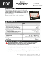 Humidity 0 to 90% relative humidity Impervious to: salt spray, fuel, oil and oil additives, coolant, spray cleaners, chlorinated solvents, hydrogen sulfide and methane gas, and dust Input and output protection all inputs and outputs are protected against short circuits to +battery and battery Input voltage range (24 VDC nominal) 18 to 32 VDC Mounting engine mounted Reverse polarity protected Shock, withstands 20 g Temperature range Operating: 40 C to 85 C (40 F to 185 F) Storage: 50 C to 120 C (58 F to 248 F) Vibration withstands 2.0 g @ 18 to 500 Hz