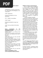 Merin CHARACTERS: Ayn Sarsaba Prosecution Counsel Anthony Prestoza Prosecution Counsel Katherine Jane Manarang Complainant Richard Alvin Nalupta Boyfriend of the Complainant (Prosecution Witness) Dr. Juan Paolo Gascon Expert Witness Analita Ocampo Defense Counsel Helen Paulette Tapire Defense Counsel Iris Victoria Merin - Accused Leira Taruc Expert Witness Catherine Bool- Nunez Officemate of Complainant (Defense Witness) Joel Macalino __________________________________________________________________________________________________ ______________________________ PROSECUTION Direct Examination of Catherine Jane Manarang by Prosecutor Anthony Prestoza COURT: Call the case. INTERPRETER: For hearing, Criminal Case No. 12345, People of the Philippines vs. Iris Victoria Merin. COURT: Appearances. PROSECUTOR government. PRESTOZA: For the COURT: Please state your name and other personal circumstances. WITNESS: Catherine Jane Manarang, 28 years of age, single, a Certified Public Accountant of the Accounting Division of Nestle Philippines and a resident of Unit 143 Astral Apartment Padre Faura St. Ermita, Manila. COURT: Your witness. PROSECUTOR PRESTOZA: The witness is being presented to testify on the fact that the accused bought the rat killer and that the substance that poisoned her was from the grapefruit juice which the accused prepared. May we proceed Your Honor? COURT: Proceed. Q: Catherine Jane Manarang, will you please tell this Honorable Court where you were on October 17, 2007 at around 8 oclock in the morning? A: I was in our apartment at Unit 143 Astral Apartment Padre Faura St. Ermita, Manila. Q: Who lives in that apartment? A: I and my best friend, Iris Victoria Merin. Q: Who was with you at that particular time of the day? A: I was alone because I did not report for work to prepare for my engagement party.