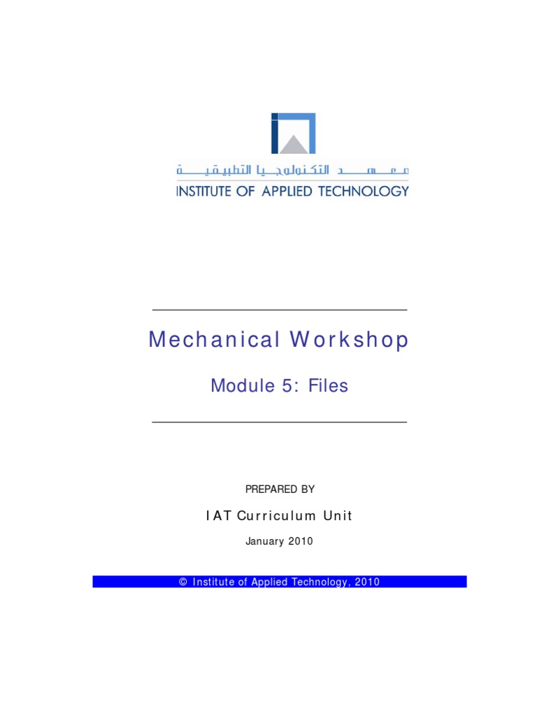 After the completion of this module, student should be able to: 1. Identify the parts, types and different grades of files. 2. Describe the different methods of filling. 3. Explain the use of the file safe edge and the file card. 4. Demonstrate an ability to file correctly and safely in a number of workshop tasks to varying degrees of accuracy.