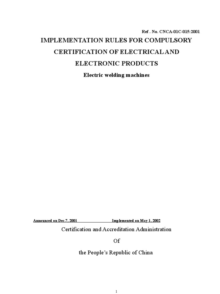 Compulsory Certification Rules for Welding Machines