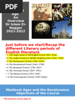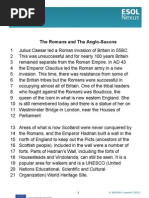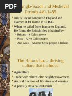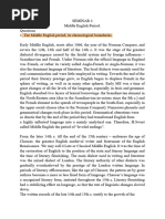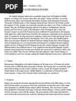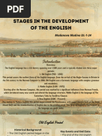 The Middle Ages 1 2 3 4 5 6 7 8 9 10 11 12 13 14 15 16 17 18 19 20 21 22 A distinct identity The Middle Ages saw the development of a national culture and identity. After the Norman Conquest, the king and his noblemen had spoken Norman French and the peasants had continued to speak Anglo-Saxon. Gradually these two languages combined to become one English language. Some words in modern English - for example, 'park' and 'beauty' - are based on Norman French words. Others - for example, 'apple', 'cow' and summer' - are based on Anglo-Saxon words. In modern English there are often two words with very similar meanings, one from French and one from Anglo-Saxon. 'Demand' (French) and 'ask' (AngloSaxon) are examples. By 1400, in England, official documents were being written in English, and English had become the preferred language of the royal court and Parliament. In the years leading up to 1400, Geoffrey Chaucer wrote a series of poems in English about a group of people going to Canterbury on a pilgrimage. The people decided to tell each other stories on the journey, and the poems describe the travellers and some of the