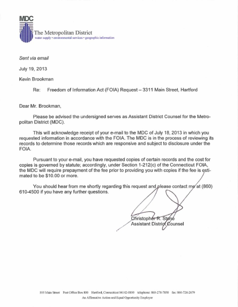 FOIA Request Acknowledgement - 3311 Main ST - Brookman 7.19.13