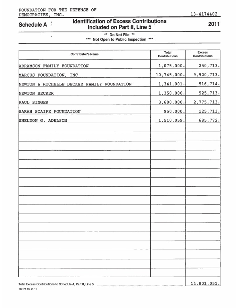 Foundation For Defense of Democracies 2011 Schedule A