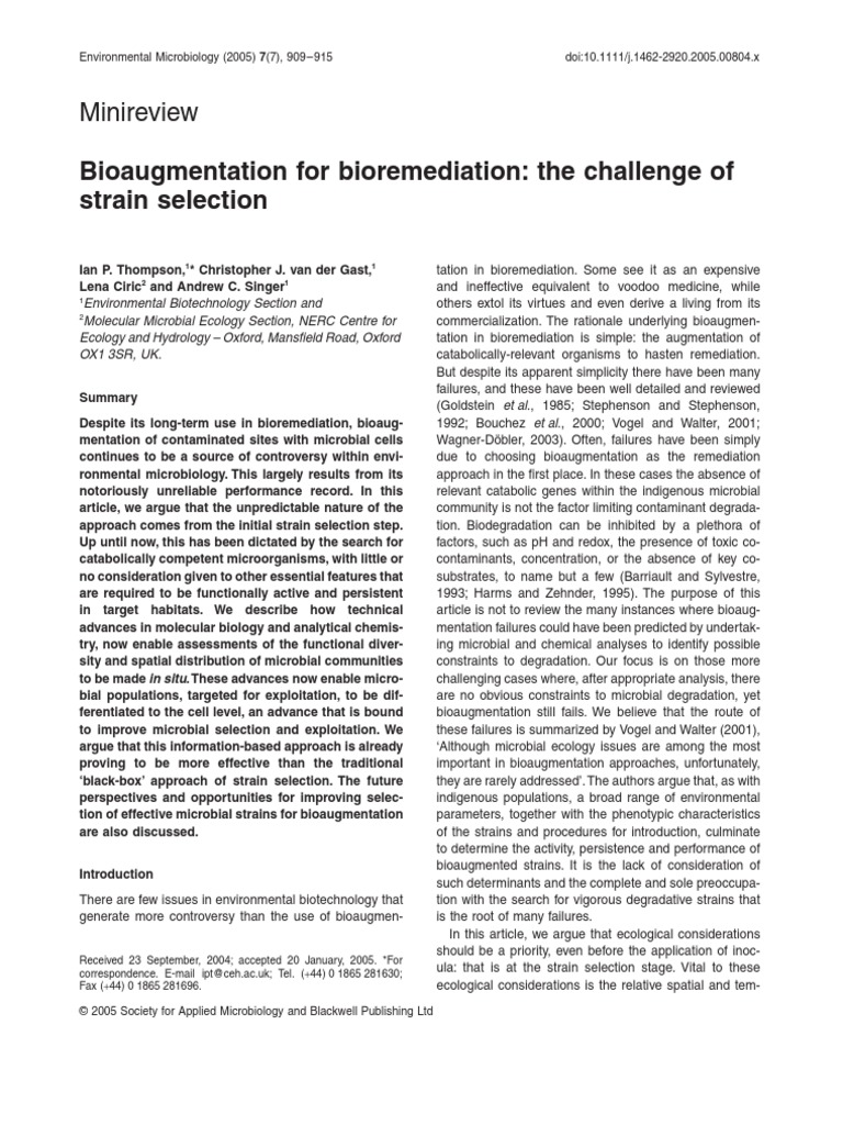 Minireview: Bioaugmentation For Bioremediation: The Challenge of Strain Selection