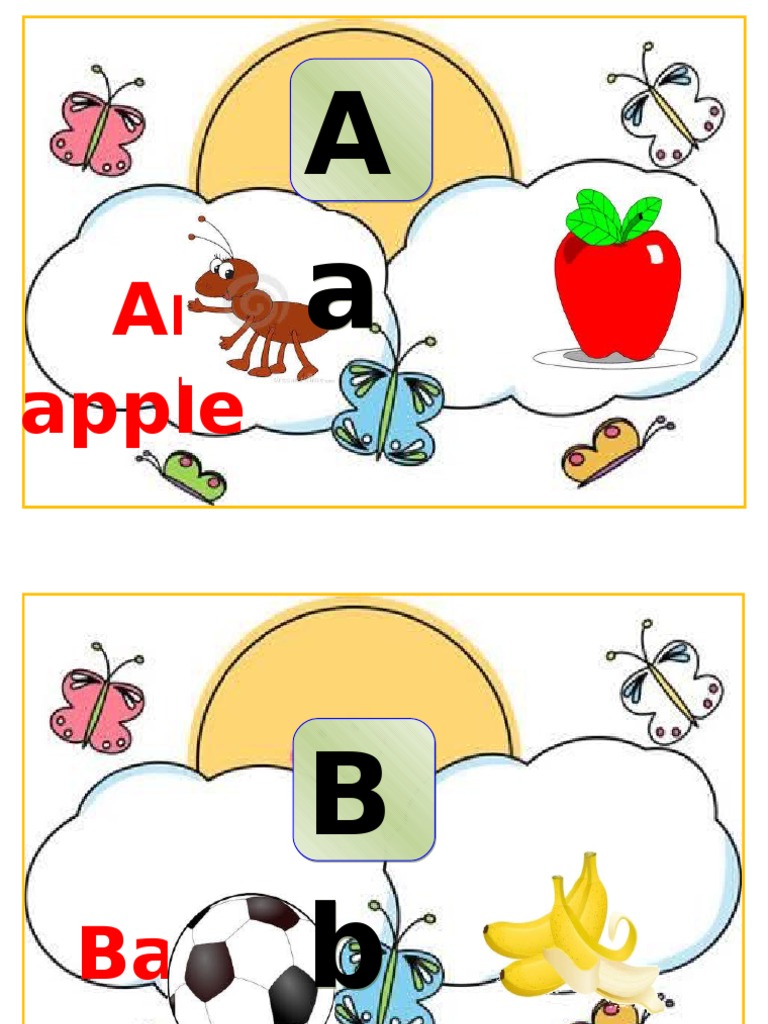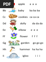 The document lists the letters of the alphabet along with a word beginning with each letter. Most words are paired with the letter "G". It seems to be providing an alphabetized vocabulary list with "G" as a sample word for most entries.