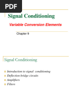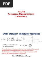 And, to determine the maximum slop, we differentiate the expression for the slope and set the result to zero. Doing that, we have the expression below. d(dVout/Rs)/dRc = Vs(Rc - Rs)/[(Rc +Rs)3] And, that tells us that the maximum slope occurs when you pick Rc = Rs. Summing that up, if you have a resistive sensor and you want to use it in a bridge circuit, the resistor in series with the sensor should be chosen so that the resistance in series has the same value as the nominal resistance of the sensor. Example You have a strain gage with a nominal resistance of 350 . The resistor in series with the strain gage should have the same value, i.e. 350 , if you want the bridge to have maximum sensitivity.
