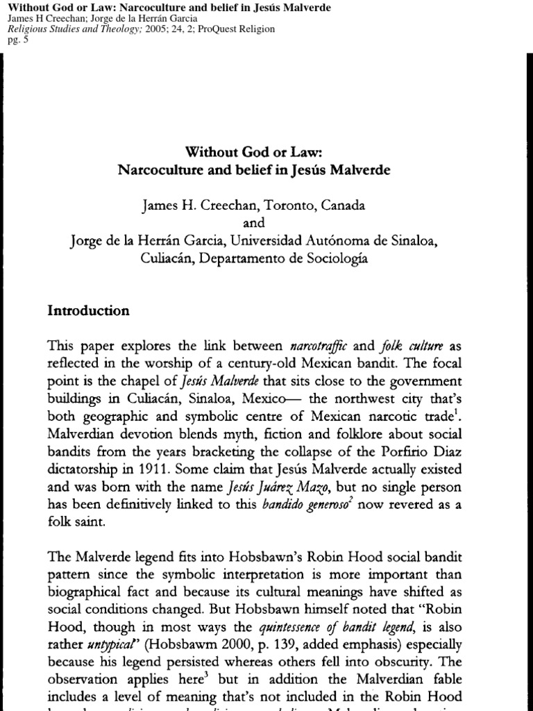 Without God or Law: Narcotraffic and Belief in Jesus Malverde