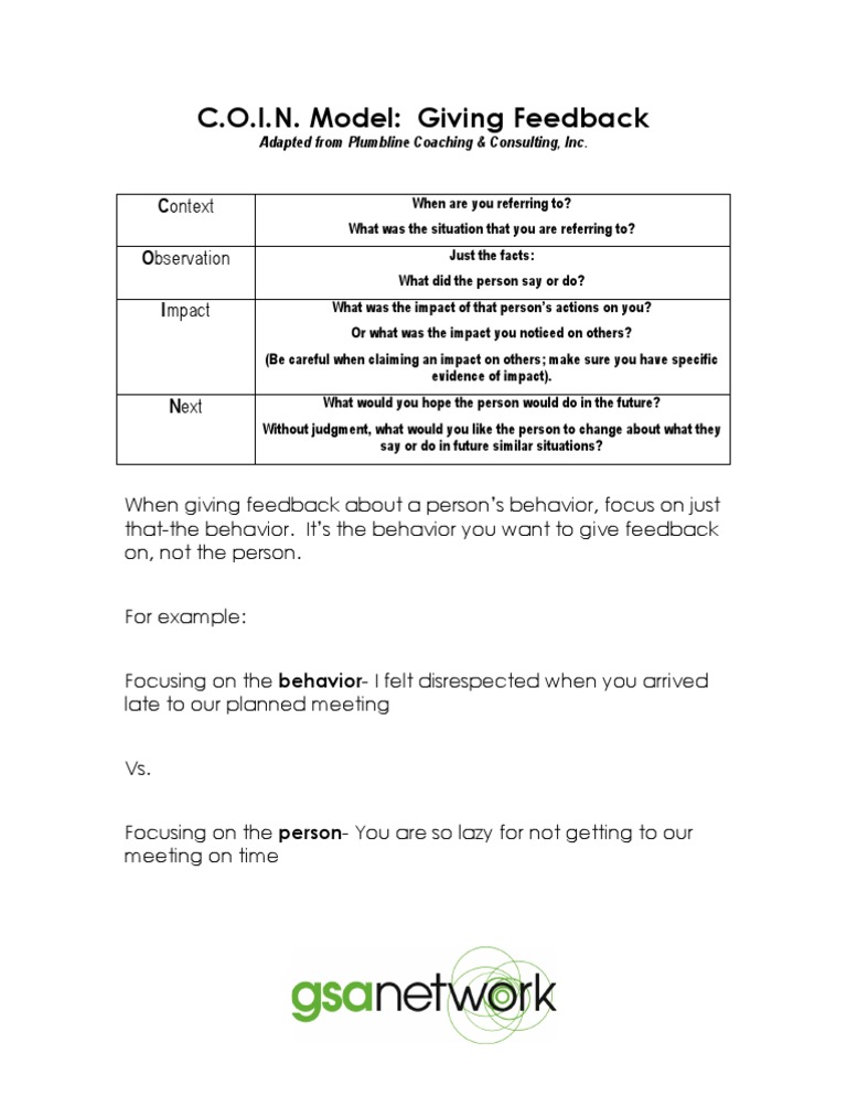 C.O.I.N. Model: Giving Feedback: Context Observation Impact